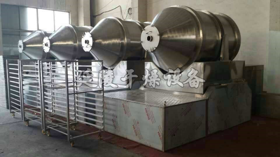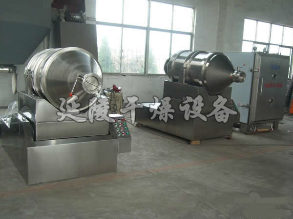 EYH二维混料机的转筒可同时进行二个运动,一个为转筒的自转,另一个为转筒随摆动架的摆动。被混和物料在转筒内随转筒转动、翻转、混和的同时,又随转筒的摆动而发生左右来回的掺混运动,在这两个运动的共同作用下,物料在短时间内得到充分的混和。 EYH二维混料机适合所有粉、粒状物料的混合。