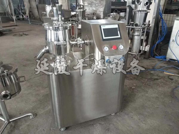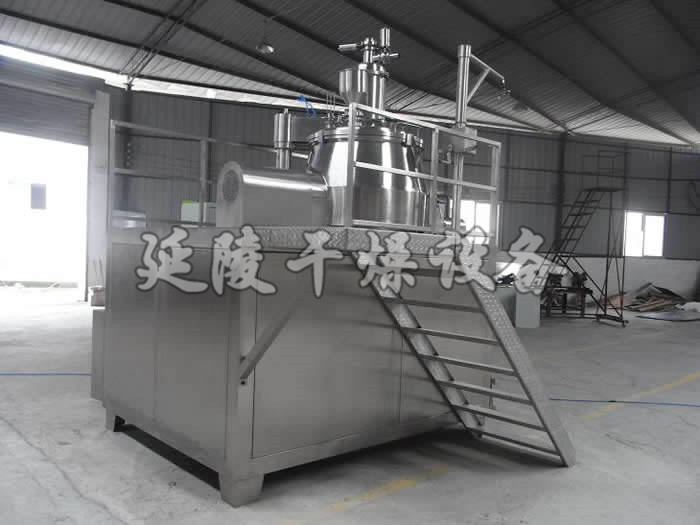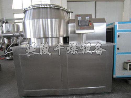本制粒机是粉体物料与粘合剂在圆筒形容器中由底步混合桨充分混合成湿润软材,然后由侧置的高速粉碎桨切割成均匀的湿颗粒。