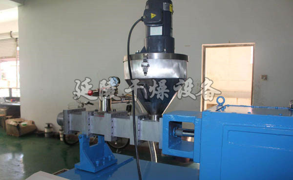 工作时,物料从料斗加入,经螺杆的推动和挤压,物料温度升高,粘性增大,并从模板孔挤出再切割形成圆柱状颗粒。 本机全部零件采用不锈钢制造,表面抛光,装拆与清洗十分方便。