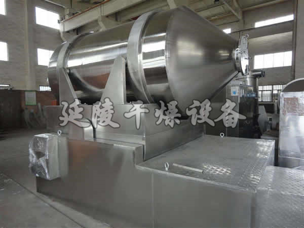 EYH二维混料机的转筒可同时进行二个运动,一个为转筒的自转,另一个为转筒随摆动架的摆动。被混和物料在转筒内随转筒转动、翻转、混和的同时,又随转筒的摆动而发生左右来回的掺混运动,在这两个运动的共同作用下,物料在短时间内得到充分的混和。 EYH二维混料机适合所有粉、粒状物料的混合。